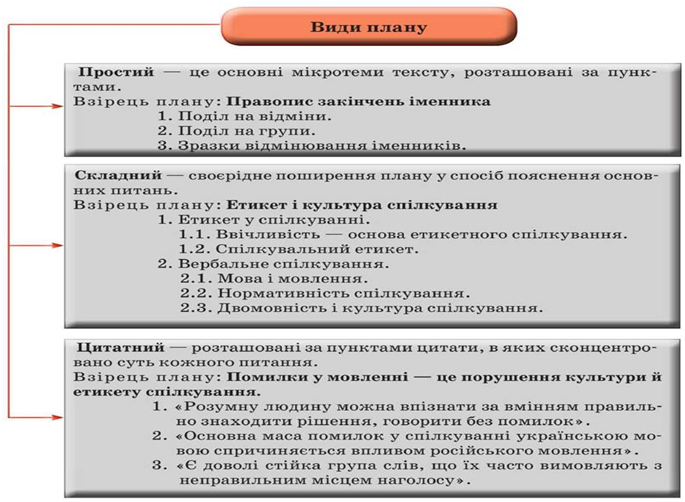 - При складанні плану використовуйте короткі і прості речення. Висловлюйте свої думки по суті